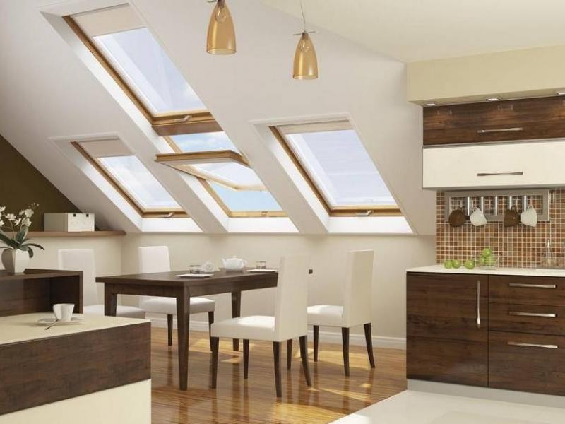 В том, что мансардные окна улучшают архитектуру здания, сомневаться не приходится, ведь они устанавливаются в любую кровлю, не нарушая силуэт крыши и формируя единое, целостное пространство. Размещение несколько подобных конструкций будет прекрасным декоративным элементом всего строения, при этом, не занимая в помещении полезную площадь и не требуя конструктивных изменений в самой кровле. Наклонные модели только улучшат планировку и комфортность любого помещения под кровлей и создают необычайно уникальный и нестандартный интерьер, который в несколько раз может поднять стоимость здания.